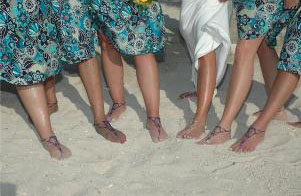 Our client… the Bride is wearing the Ice & Swarovski Crystal Princess Barefoot Sandals and her bridesmaids are wearing the Caribbean Beach Barefoot Sandals