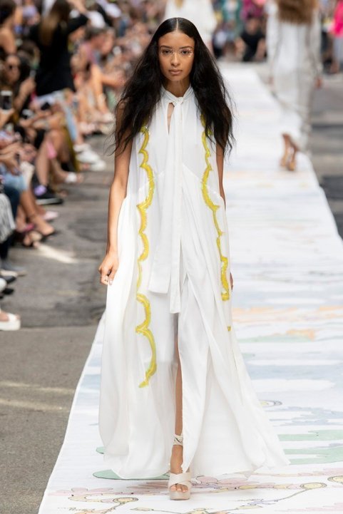 We were invited to attend the Cynthia Rowley fashion show on Tuesday, September 10th and I must say that I was thoroughly impressed with the designs. The fashion show was held outdoors and it was unbelievably crowded. The runway was extremely long with a Dr. Seuss themed carpet and what else can I say but I loved it! This show did not disappoint. I could not keep my eyes off of those designs!