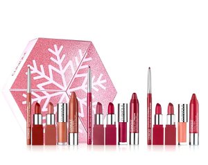 This has to be one of the best holiday makeup sets for the lips. The snowflake box actually breaks up into three section. Each section has a different lip set: nude, pink and plum.
