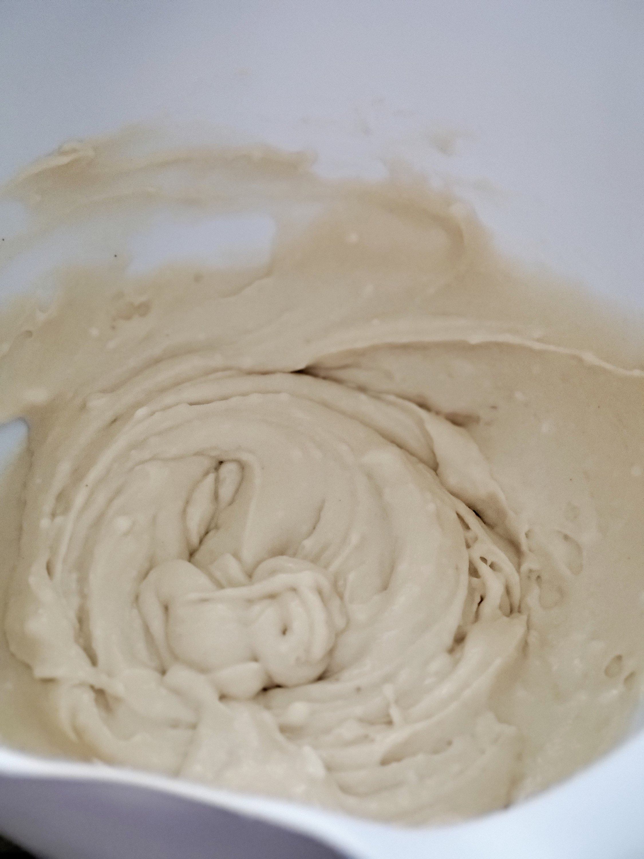 Start mixing in the dry mixture into the wet mixture